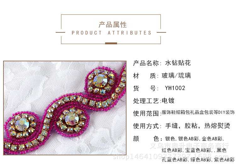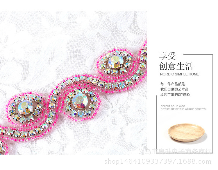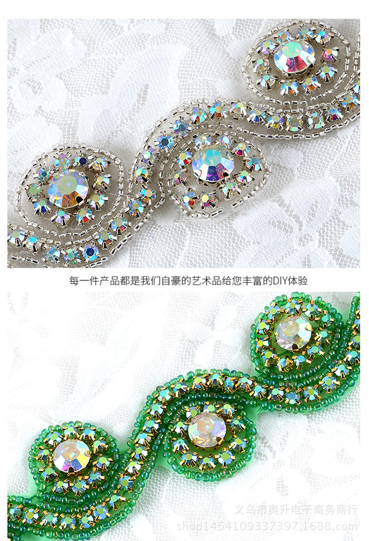 供应diy水钻贴花腰带配件 婚纱礼服玻璃钻纱花朵服饰装饰配饰批发图1