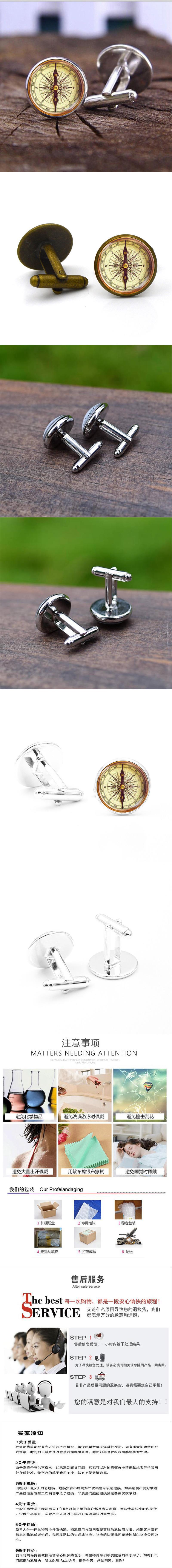 亚马逊新款 复古指南针时光宝石袖扣 法式男士衬衫袖钉 西装纽扣图1
