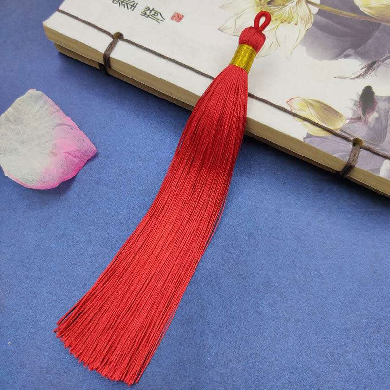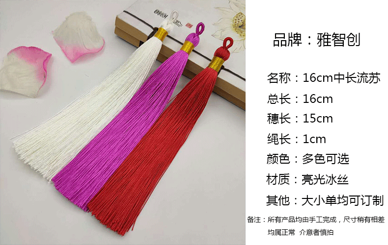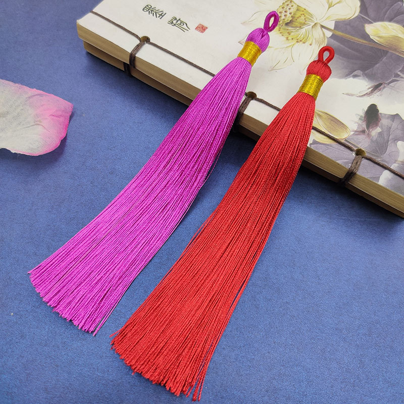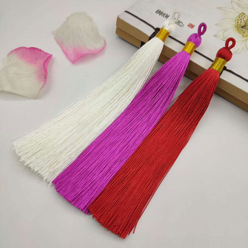 厂家现货涤纶冰丝15CM长流苏 多色扇子吊穗挂件金线拉圈流苏穗子