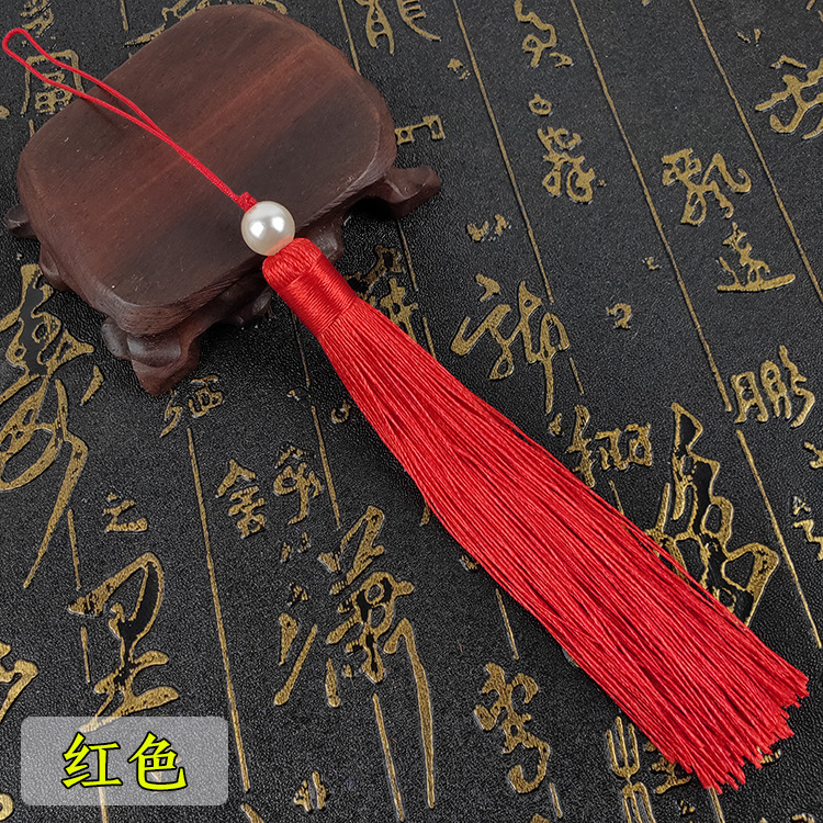 厂家直销 流苏穗子 仿珍珠12厘米垂直流苏扇坠 涤纶冰丝吊穗批发图1