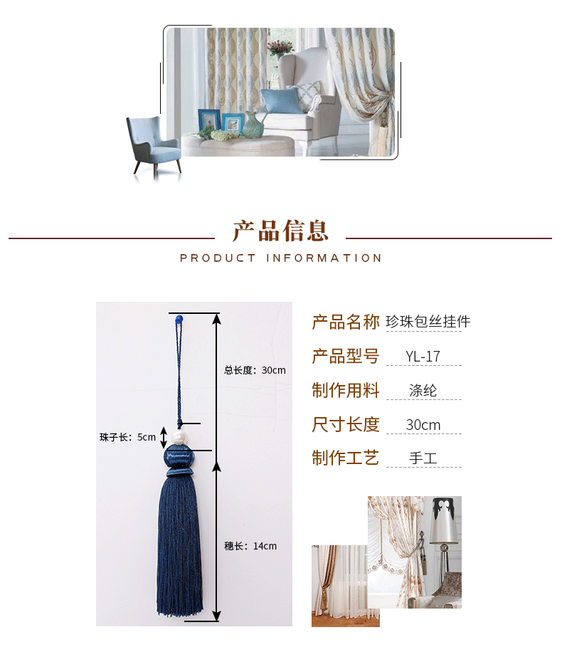 现货 珍珠流苏吊穗 窗帘流苏珍珠包丝挂件 服装辅料装饰 桌旗吊穗图1