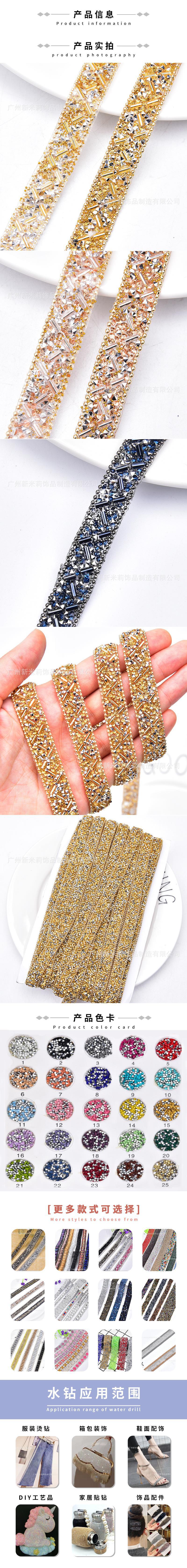 现货 管珠珠链烫胶长条水钻链背胶烫钻贴钻 服装衣领鞋帽花边辅料图1
