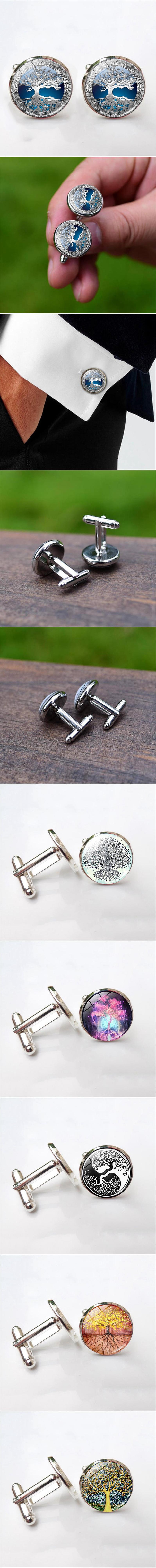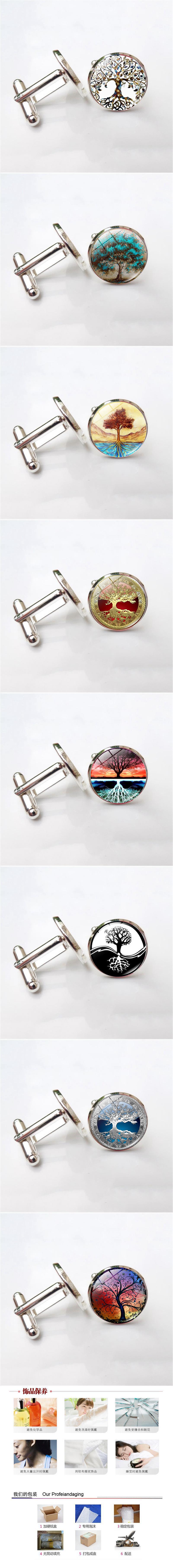 速卖通热销 生命之树时光宝石袖扣男士衬衫金属水晶袖钉纽扣 法式图1