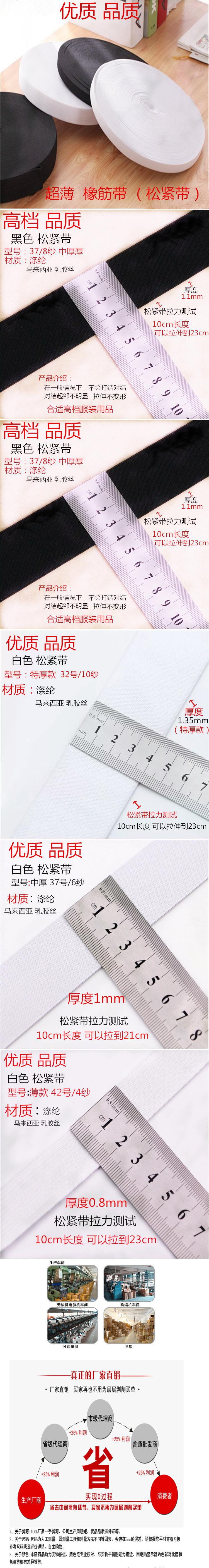 现货裤子腰带针织松紧带宽橡筋橡皮筋黑白色弹力裤子细服装辅料图1