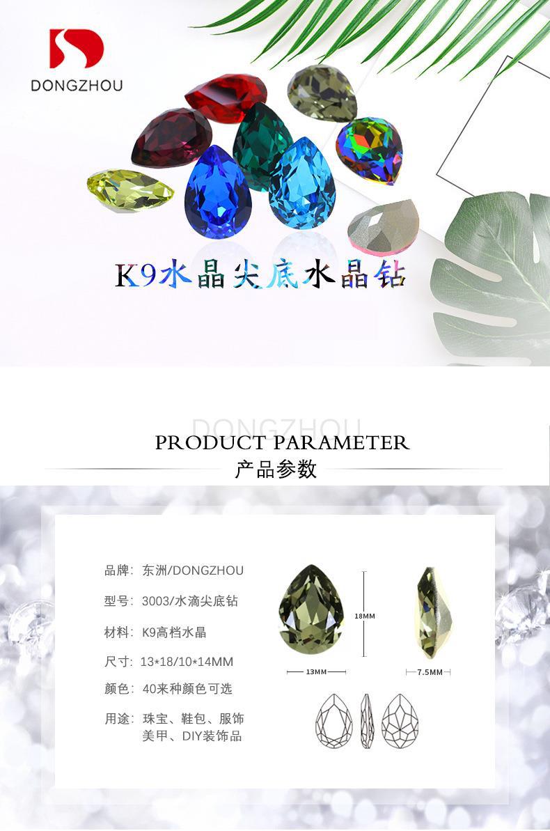 K9玻璃钻水滴尖底钻diy饰品配件贴钻服装鞋包立体装饰钻图1
