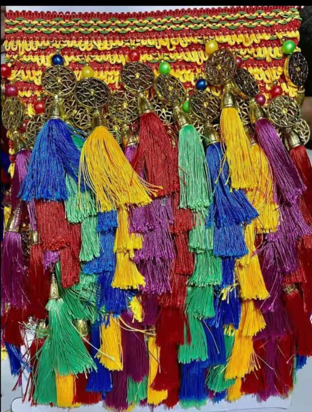 民族风五色轻卡大货车前挡风玻璃多彩锦绣吊粒装饰挂穗流苏吊穗图1