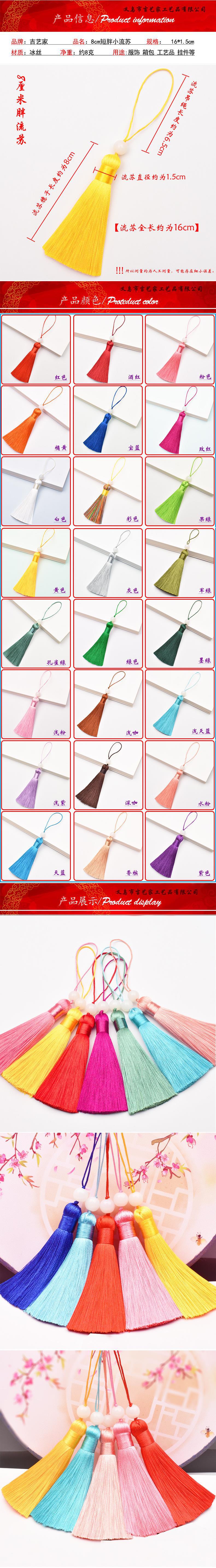 8cm垂直抗皱冰丝短胖流苏穗子服饰香包配饰 书签发簪梳子吊穗挂件图1