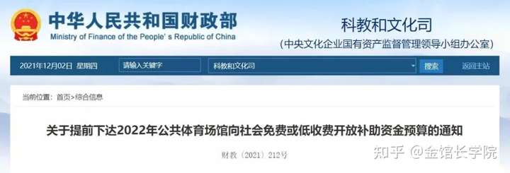 11月30日,财政部发布《关于提前下达2022年公共体育场馆向社会免费或低收费开放补助资金预算的通知》,提前下达2022年公共体育场馆向社会免费或低收费开放补助资金预算8.3734亿元。