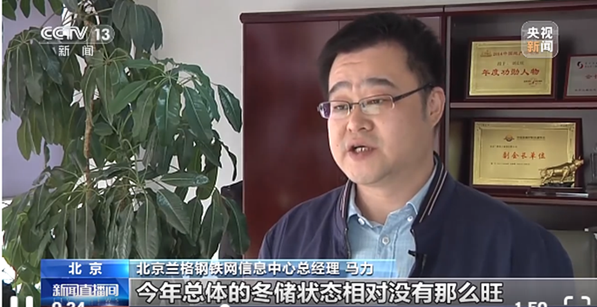 12月28日,中央电视台就钢材冬储采访兰格钢铁网首席分析师马力。