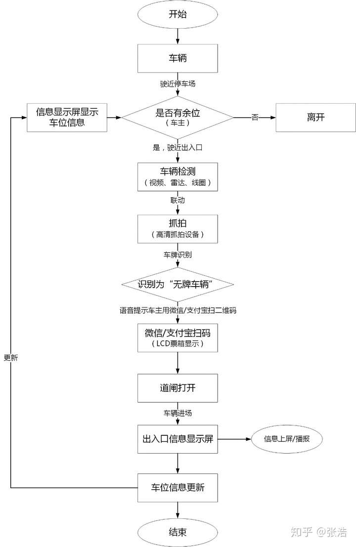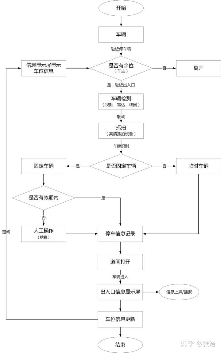 车位管理流程包括车位的分配和释放,通过将车辆出入信息实时传入系统数据库,来更新车位信息。车位管理流程包括两个阶段,一是车辆进入时的车位分配和车位信息更新,二是车辆离开时的车位信息更新。