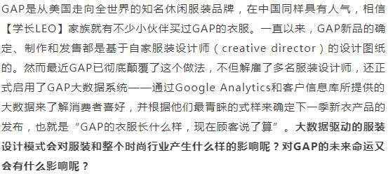 案例原名:Predicting Consumer Tastes with Big Data at GAP