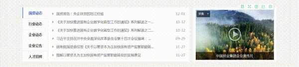下半部分左侧主要展现国资动态、行业动态、企业动态及其他企业资讯,右侧为中国林业集团企业宣传片,更有深度的展现了公司业务与企业实力。