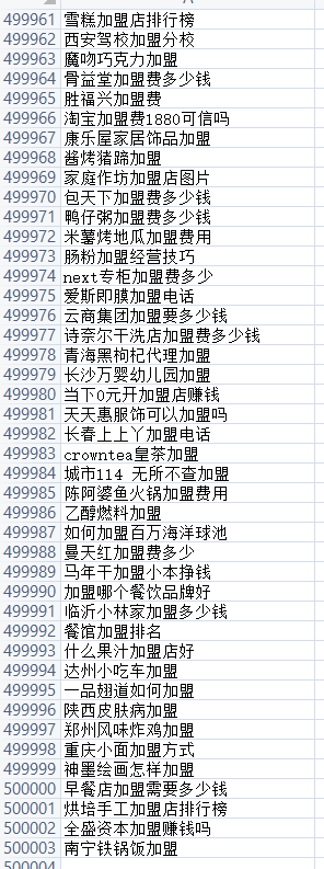 上面这张图展示的是跟加盟相关的词的搜索需求,有五十多万个呢!