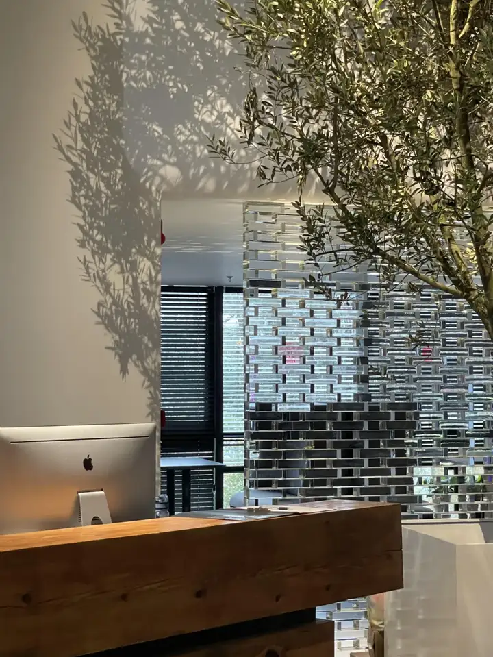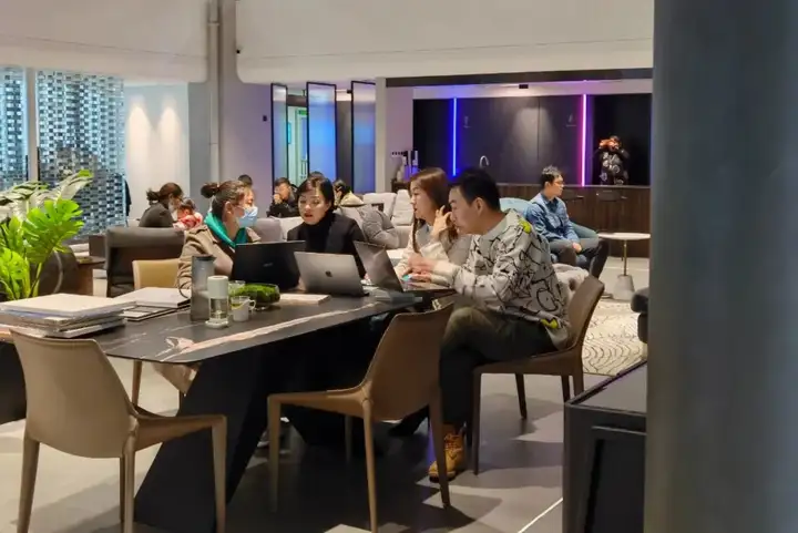 玻璃门缓缓打开,一踏进来首先看到的是前台区域,专属展厅导游,哦,不,是客户经理已经在这里恭候多时。