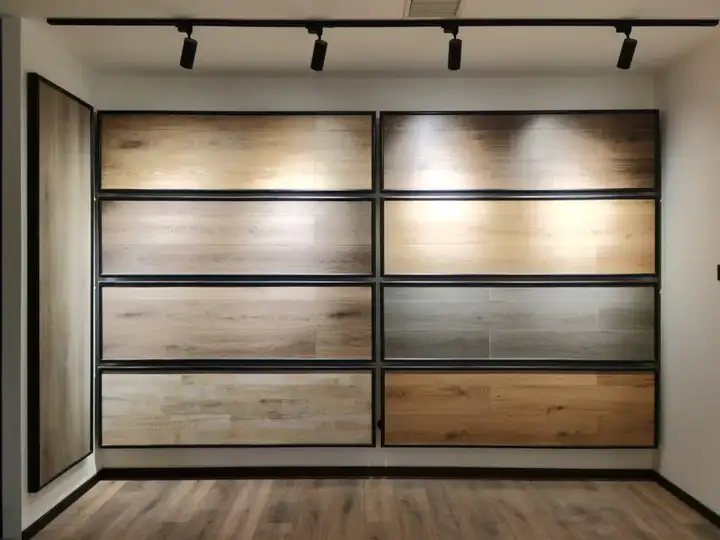 很多业主在挑选板材时都担心所选材料铺贴的最终效果,我们专门规划了木质板材区域来解决大家这一问题。展厅内,地面所铺设模样即是未来交付现场。