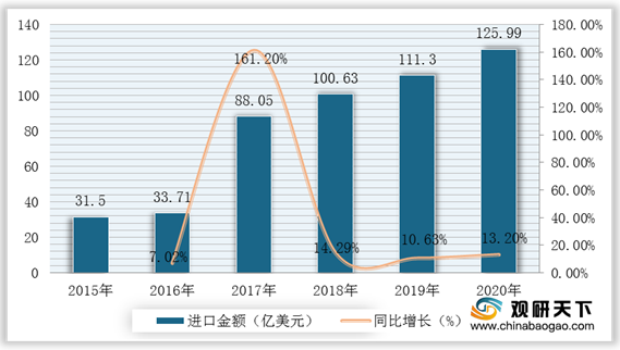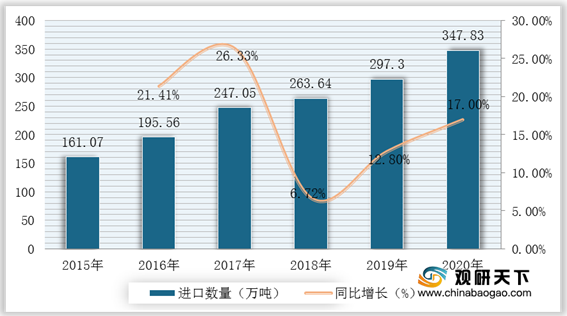 2015-2020年我国乳制品进口数量及增速