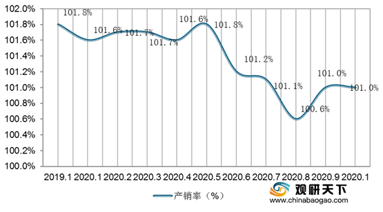 2019年10月-2020年1-10月我国乳制品产销率
