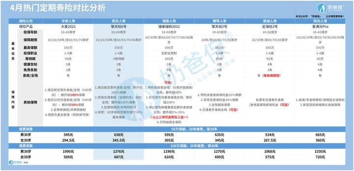 - 奶爸聊保险:定期寿险榜单|4月推荐的定期寿险榜单