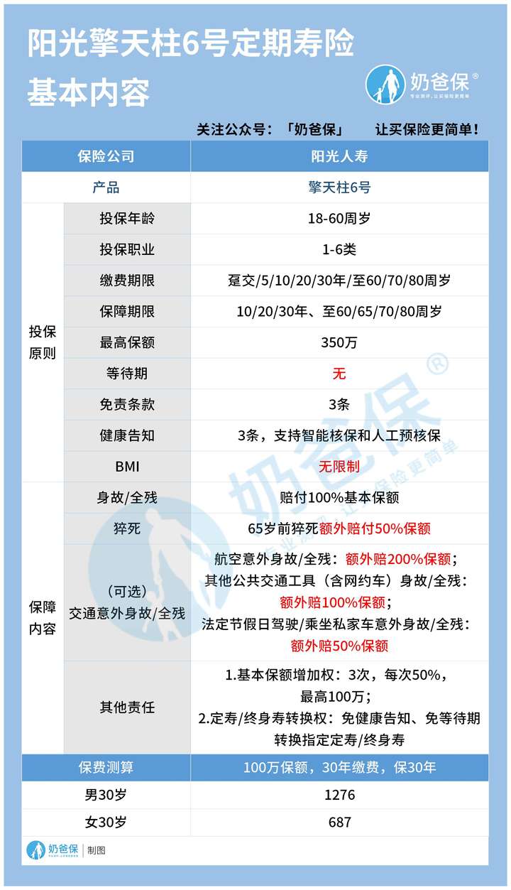擎天柱6号定期寿险该怎么买?最高350万的保额是谁都可以买吗?有没限定?想知道的朋友可点击链接咨询奶爸,解决你的保险问题~