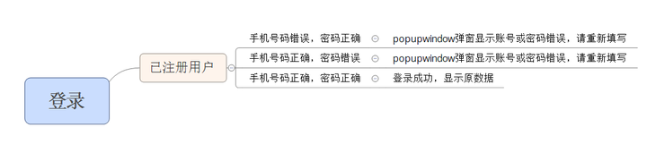 根据PRD的用户故事或者原型图的规则说明列出每个功能点的验收标准,列出每个操作流程的验收标准,即预期结果(预期结果以微信实操的结果模拟,吐槽一下微信手机号码输入框没限制号码长度的等一系列的低级体验问题)。在操作流程的脑图基础上补上每个故事点的验收标准,如下图所示: