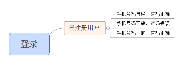 抛开技术层面,只从测试思维考虑,从职位要求可以看出,所以测试工程师的核心能力在于有耐心地提出挑战性的相关问题,从不同的角度,验证产品的可行性,善于找出错误让程序不能正常运行的问题。因为带着问题,才能发现问题,比如他们会问,产品的目的,产品主要在什么平台上使用,如果不符合的数据输入会不会发生程序崩溃,会从各种实用场景中发现问题。从各种场景发现问题,也就是要求我们要多使用,多问如果...会怎么样为什么的问题,毕竟找到关键问题的最好办法就是提问。因为多问为什么,发散思维,也使得测试人员会从不同的用户角度(交叉测试)去思考问题,包括毫无经验的用户、很有经验的用户、爱好者、黑客、竞争对手等等,产品的受众越多,不同类型的用户就越多,就需要从更多的用户去思考问题,当然,用户越多,其操作行为和工作流程就越多,比如随意输入、随意点击。随意输入、随意点击,不断和系统交互,带着问题测试,也就是所谓的探索性测试,探索产品未被发现的bug的存在隐患。探索性测试,完全抛开测试脚本的测试,是一种测试风格、思维而不是一种测试技术,分为局部性测试和全局性测试,局部性测试主要是对某个模块进行输入输出的测试,全局性测试主要是像游客一样使用软件系统。探索性测试,自由灵活会增加发现新的bug的可能性,执行与设计(思考)并行,减少在简单、繁复上用例的无谓编写时间,不断和系统交互,带着问题测试,但更依赖系统完成可用的情况下才能交互使用探索,且难协调和控制,所以一般都是测试工程师采用monkey自动化测试进行探索性测试。从上面的职责和测试人员的测试工作,我们不难看出,测试的主要思维就是带着问题以不同用户的不同操作流程去使用产品达到发现bug。了解了测试思维,那么还需要了解测试的流程是怎样的,毕竟流程是规范性的要求,保证测试能有序有目的的进行。测试的流程主要为测试计划-测试用例-测试执行-测试报告。测试用例主要是测试人员根据PRD、流程图、原型图、UI、收集的资料来编写,通过需求文档了解需求背景,用户画像、使用场景、用户故事,通过流程图、原型图了解功能需求,站在用户角度和项目实情去思考,尽可能地覆盖全面使用路径。测试用例编写之前,产品经理都是最熟悉产品,知道产品的目的,即用户故事同理心,知道产品主要是在什么系统、平台运行,知道数据是什么类型,知道调用哪些外部的接口,知道哪些是关键模块,知道产品的规划,可以更快速地测试是否符合产品需求文档的要求,所以产品经理应该和测试人员详细地宣讲产品,也就是所谓的必须进行的产品宣讲,这样测试人员能好地理解编写测试用例,产品经理也能借助测试人员的经验更好地进行测试验收产品。编写好测试用例时,根据需求文档的需求优先级和风险级别定义测试优先级别,重点测试核心模块,比如电商网站的搜索浏览商品和下单的完整流程是优先级别的测试模块。开始测试产品过程中,详细写好步骤和具体问题,问题很多类型,所以记好问题类型,当然很多问题是可以被预先确定和测试的,所以注意操作步骤及操作环境,比如是否按照正常流程操作,用户是否打开数据网络。产品经理一般是根据测试用例来测试验收产品,符合验收标准即可。测试用例可以从测试人员那里要,或者自己根据谁、怎么做、结果的用户操作流程编写一个符合规则的测试用例去测试,最后去思考问题的原因和解决方案,以及把测试的问题反馈给测试人员跟进和开发人员解决。测试模块尽量独立,覆盖全面,减少耦合。这里我们以微信手机号登录功能模块的功能测试为测试案例,讲讲测试步骤和测试用例。当然,不同公司的测试步骤和测试用例会有些不一样,不过相差不大。测试前需要准备一些测试的硬性需求,比如测试的相关数据(比如是否后台创建测试账号)、测试设备(比如iphone5、6、7)、测试需要的软件(比如操作系统,浏览器)。这里微信登录功能测试的需求:数据(一个已注册的用户账号密码,一个未注册的手机号码),设备(一部手机),需要的软件(android/ios)。根据带着问题以不同用户的不同操作流程去使用产品达到发现bug的测试思维,编写测试用例。首先用脑图列出模块的不同用户的不同操作流程,这样可以覆盖功能全面路径。这里只列举主要使用场景,如下图所示:
