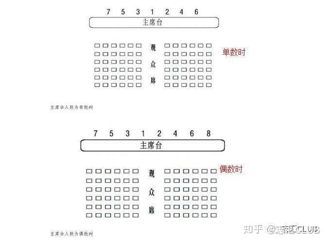 主席台的排列。当主席台人数较多时,可设立1排以上的主席台,领导分排就座。主席台的坐席顺序,请参考《一张图读懂座次礼仪》。