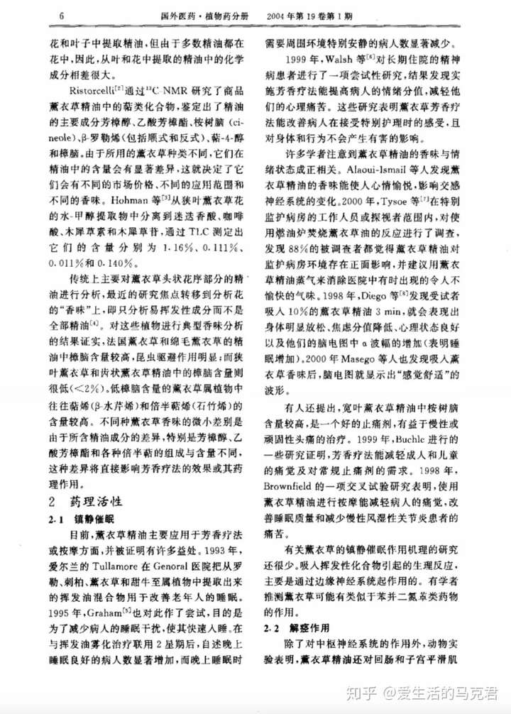 王玉芹,孙亚军,施献儿.薰衣草精油的化学成分与药理活性[J].国外医药(植物药分册),2004,19(1).
