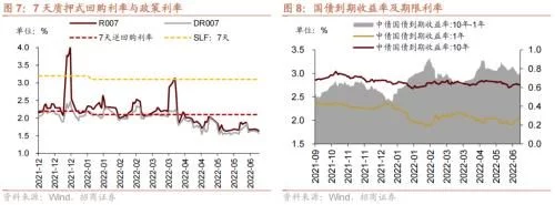 货币市场利率下行,R007与DR007利差扩大;短端国债收益率上行,长端国债收益率下行,期限利差缩小。截至6月10日,R007为1.63%,较前期下行4.1bp,DR007为1.57%,较前期下行5.5bp,两者利差扩大1.3bp至0.06%。1年期国债到期收益率上升4.9bp至2.01%,10年期国债到期收益率下降0.7bp至2.75%,期限利差缩小5.6bp至0.75%。
