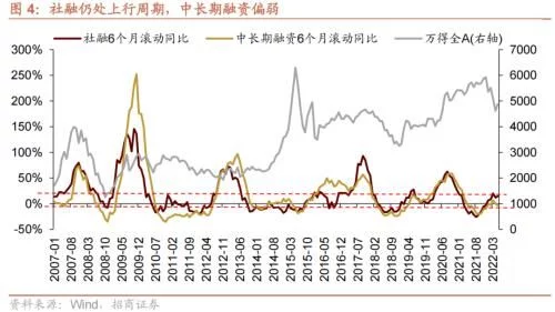 ·5月社融总量超市场预期,新增社融增速改善重回上行。从社融结构来看,人民币贷款和政府债券融资改善是主要拉动因素。从不同部门信贷结构来看,企业部门票据融资和短贷同比大幅多增,显示政策支持叠加疫情缓解,市场融资需求确有改善,不过实体部门中长期贷款需求相对偏弱,仍有待进一步恢复。整体而言,社融仍处于上行周期,社融总量的超预期增长对于A股具有正面的支撑作用。结构上,尽管目前政府是加杠杆主力且企业融资中票据融资占比较高,但疫情过后,各项生产和经营活动陆续恢复正常,加上出台了各类稳增长的支持性政策和房地产放松政策,有望提振实体部门的中长期融资需求,当然,这也是经济逐渐企稳改善的重要信号。