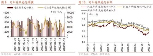 同业存单发行规模扩大,发行利率均上行。6月6日-6月10日,同业存单发行575只,较上期增多281只;发行总规模5260.2亿元,较上期增多3824.8亿元;截至6月10日,1个月、3个月和6个月发行利率分别较前期变化16.8bp、2.3bp、9.1bp至1.95%、2.10%、2.19%。