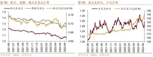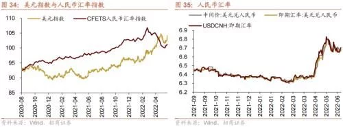 6月6日-6月10日,美元指数回升,人民币相对美元贬值。截止6月10日,美元指数收于104.19,较前期(6月5日)上升2.02点,人民币汇率指数较前期上升0.6点收于101.2点,美元兑人民币中间价下降、即期汇率上升、离岸汇率上升,分别为6.70、6.69、6.73,人民币贬值。