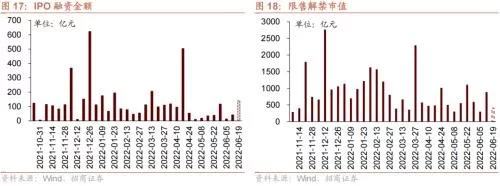 限售解禁市值为888.1亿元(首发原股东限售股解禁363.9亿元,首发一般股份解禁183.6亿元,定增股份解禁314.1亿元,其他26.4亿元),较前期上升。未来一周解禁规模下降至404.8亿元(首发原股东限售股解禁207.9亿元,首发一般股份解禁9.1亿元,定增股份解禁178.7亿元,其他9.2亿元)。