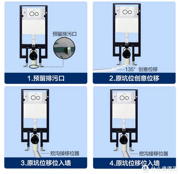 安装壁挂马桶,都是要改管道的,建议不要使用移位器,容易堵,后面琐事很多,还会影响美观。要从主管道直接接管,之后再砌墙隐藏起来,这样是不会出现堵的情况。