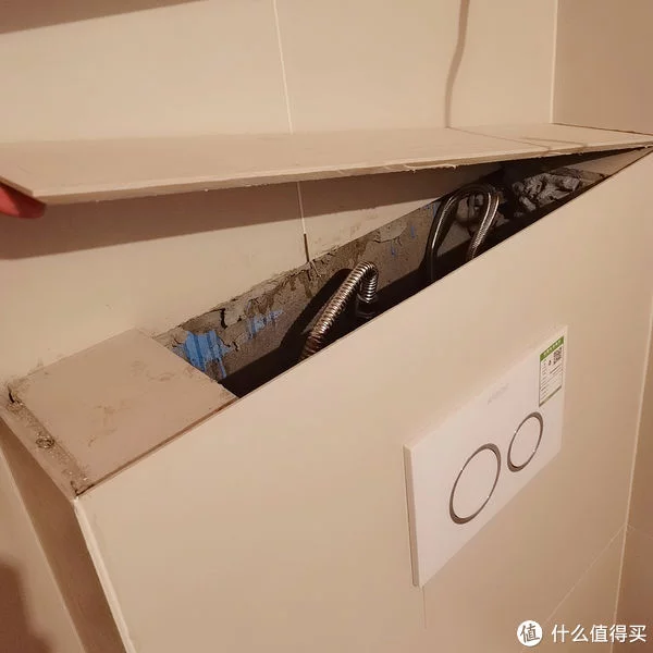 装好墙面的冲水开关,最后再购买一个智能马桶盖装上就行啦。因为怕把马桶盖弄脏,所以暂时没有安装。