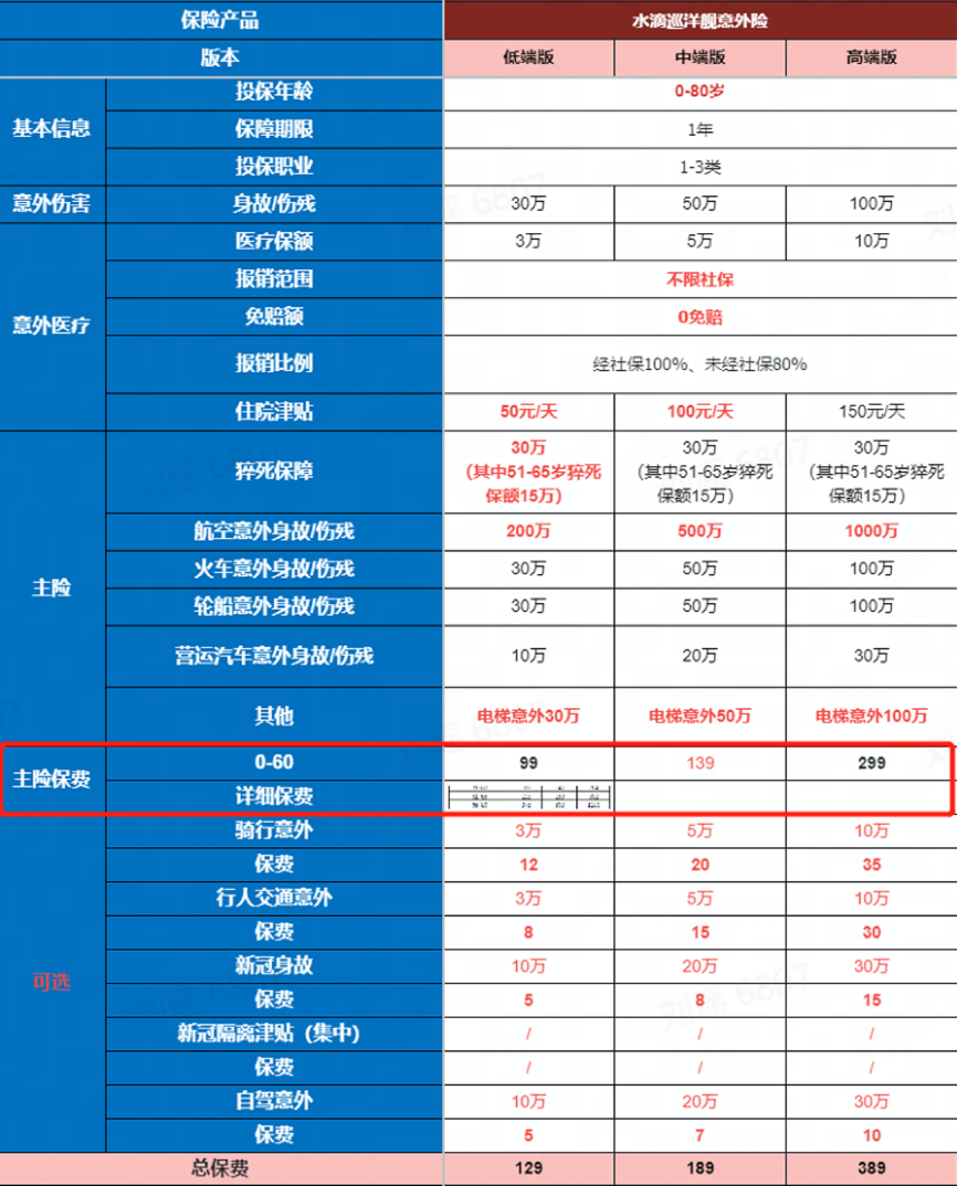 而巡洋舰从出生一直80周岁都可以承保,尤其是60岁以上的中老年人,进入了退休养老的年龄,身体状况不佳,意外风险是非常高的,所以这一点能吸引到因为年龄原因选不到合适产品的中老年朋友。