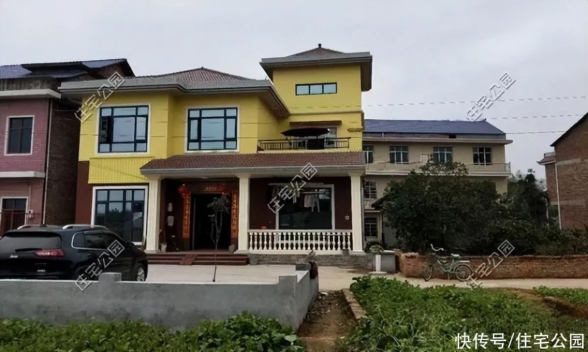 这栋二层小楼是湖南的漆先生所建,参考小宅ZJ-446号图纸,漆先生根据自己的喜好和需求进行修改,一层增加柴火房,三层增加阁楼,更适合农村审美,也更适合农村生活习惯。