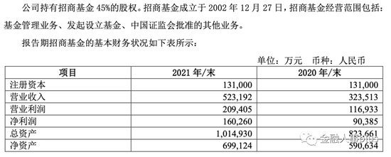 2022年3月27日晚间,招商证券年报显示,报告期内,公司实现营业总收入294.29亿元,同比增长21.22%,实现归属于上市公司股东的净利润116.45亿元,同比增长22.69%。招商证券持有招商基金 45%的股权。招商基金营业收入52.32亿元,同比增长61.72%;净利润16.03亿元,同比增长77.32%。