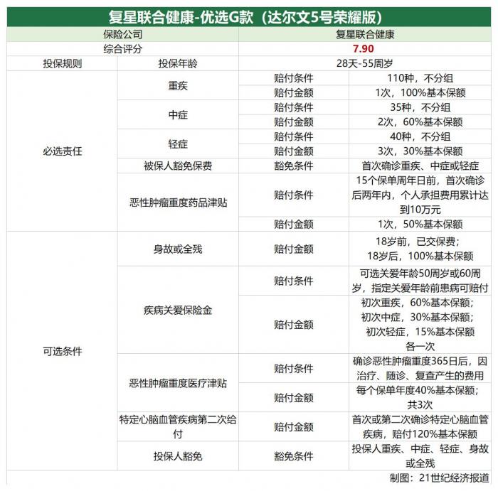 二、复星联合健康-优选G款(达尔文5号荣耀版) 推荐指数:✮✮✮