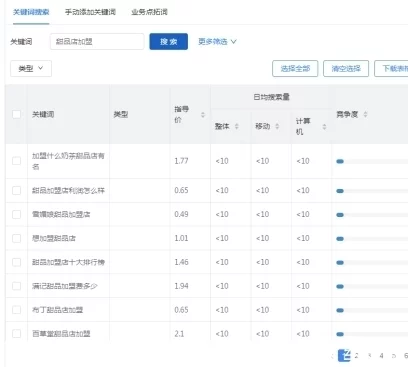转化低、意向低的潜在网民可采用低价获取曝光:人群词、产品词由于加盟意向低的特点,建议设置低价,首屏展现,低价获得点击。