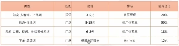 针对不同关键词词性按照漏斗原则,设置阶梯出价,