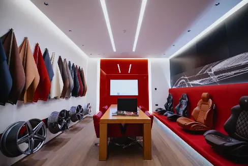 此外,展厅还设有法拉利专属的Atelier个性化定制区域,客户可在这里对个性化定制获取灵感并进行构想。全新升级的展厅完美彰显了法拉利品牌的DNA——经典传承、激情澎湃、矢志创新、精湛工艺与团队精神,为每位客户带来难忘的体验。