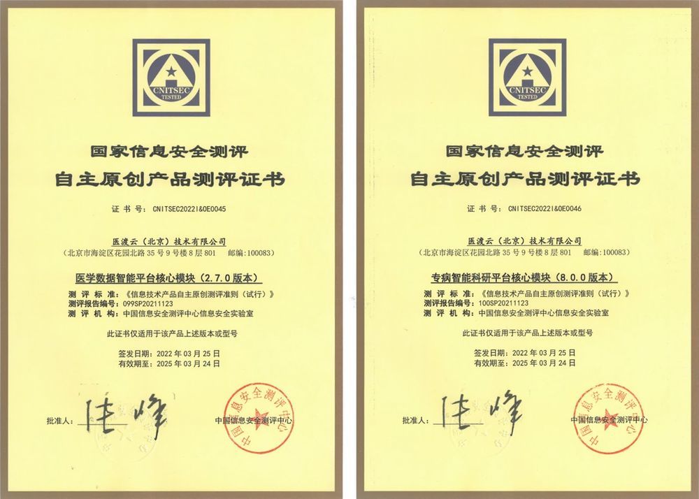 近日,医渡科技(2158.HK)旗下医渡云研发的医学数据智能平台核心模块(2.7.0版本)、专病智能科研平台核心模块(8.0.0版本)(即专病库),通过了中国信息安全测评中心测评,获得自主原创产品测评证书,成为首个通过该认证的医疗科技产品。