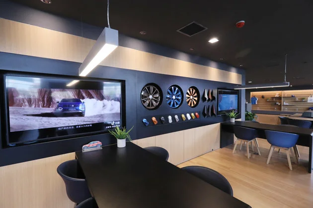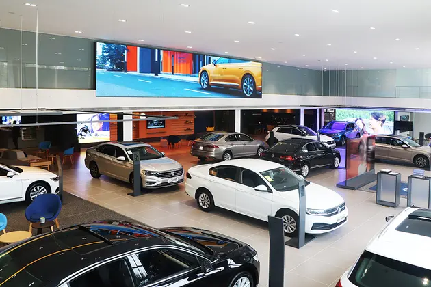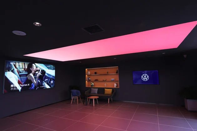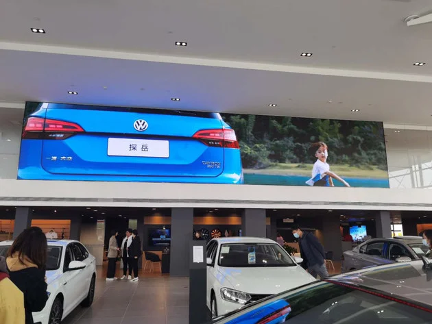 1.大尺寸LED屏:在展厅的正上方有个非常显眼,超大尺寸的LED屏,视觉效果非常震撼,如果在店内举办购车活动、发布会等,都能充分利用起这块大屏,不用现场搭台也能营造出良好现场氛围。