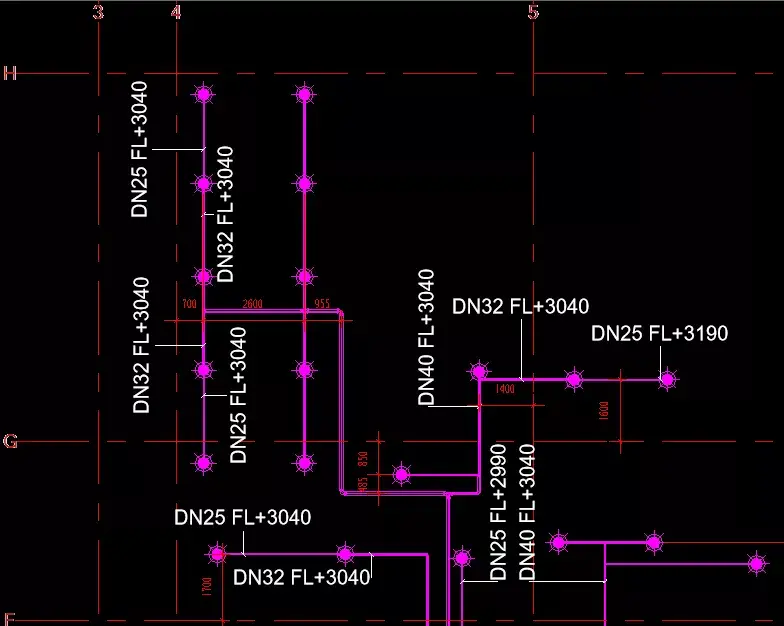 这里需要注意出图的比例,尺寸标注的样式、单位和字体大小。标注的时候要注意看是以墙、柱还是轴网为基点。标注的时候也要说明水管、风管、桥架在图中参照标高,标注的时候也要说明水管、风管、桥架标注的是管中还是管底。还需要标清高度、系统、名称、直径或是尺寸、定位。