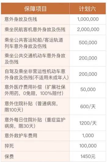 这款保费是1450元。这个意外险它全额得到报销了,并且比他想象中的还要多一点,因为他可以得到伤残的60万,还有医疗费用的4万,还有住院津贴的钱。