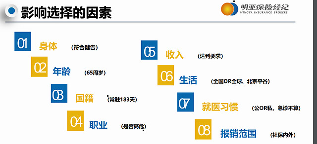 如果是外籍,得在内地是需要长住183天才可以买。然后如果不是长住183天的怎么办?这个时候可以考虑买那种国际型的保险公司的国际型的产品,因为他有一些产品他是直接报全球的,全球范围都可以的。