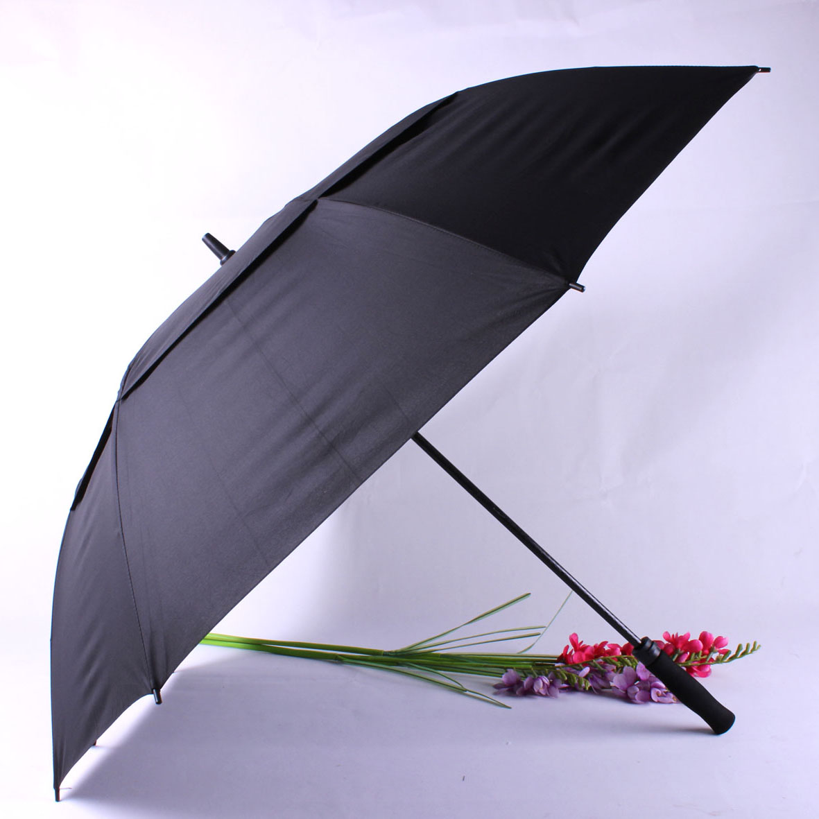 - 双层黑色高尔夫伞全纤维直杆伞男女士商务伞 批发订做