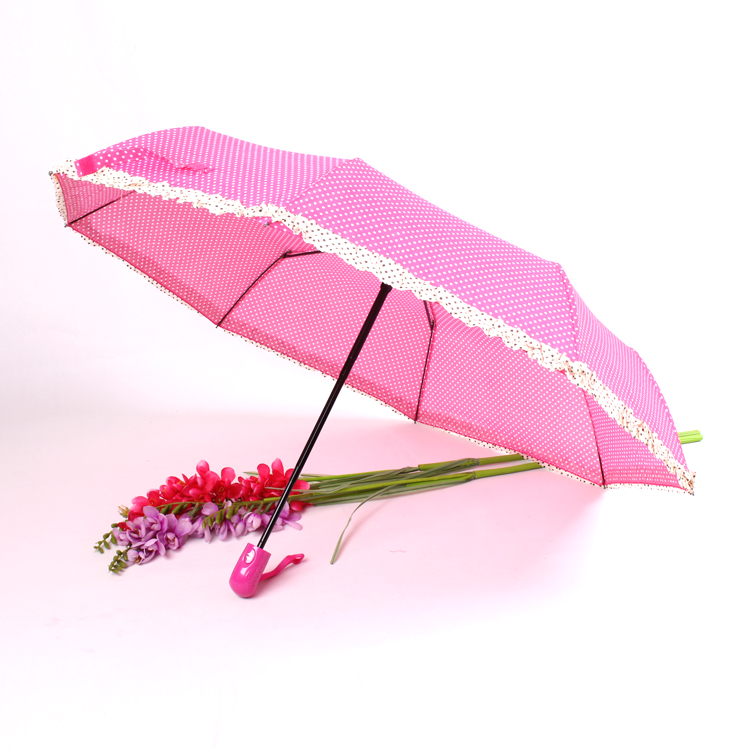 - 全自动裙边伞蓝色粉色伞 女士圆点伞 折叠伞 定做批发