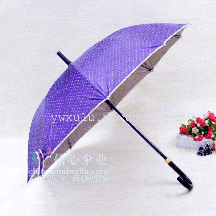 - 16骨超强雨伞印花直杆伞外贸雨伞精美裙边伞