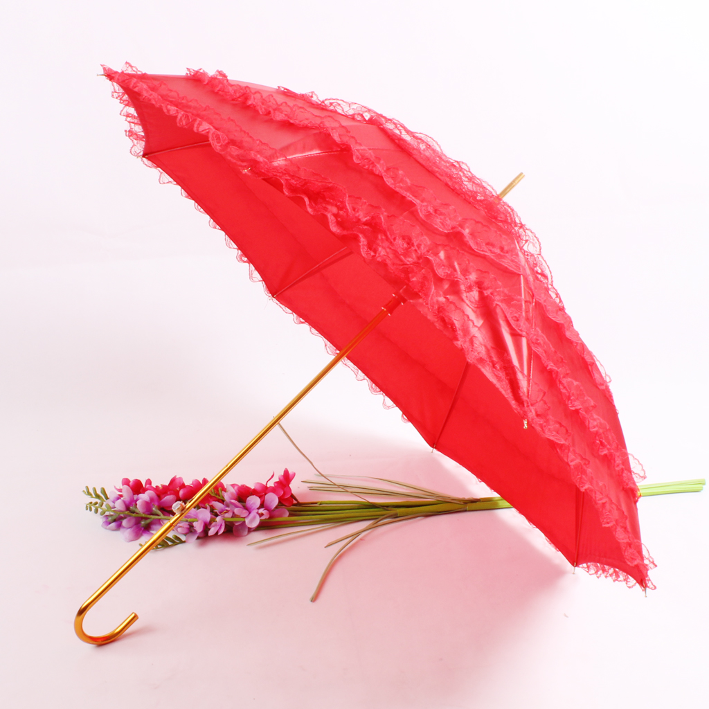- 高档婚庆大红蕾丝边直杆伞婚嫁必备金色晴雨伞批发订做